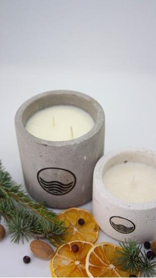 Pravimo posude od betona koje imaju minimalistički, industrijski dizajn. Koristimo ih za pravljenje sveća od smese sojinog i kokosovog voska ali i kao dekor i saksije za sukulente. Od pažljivo formulisane smese voska pravimo i mirisne pločice koje se mogu koristiti kao osveživači manjih prostora.